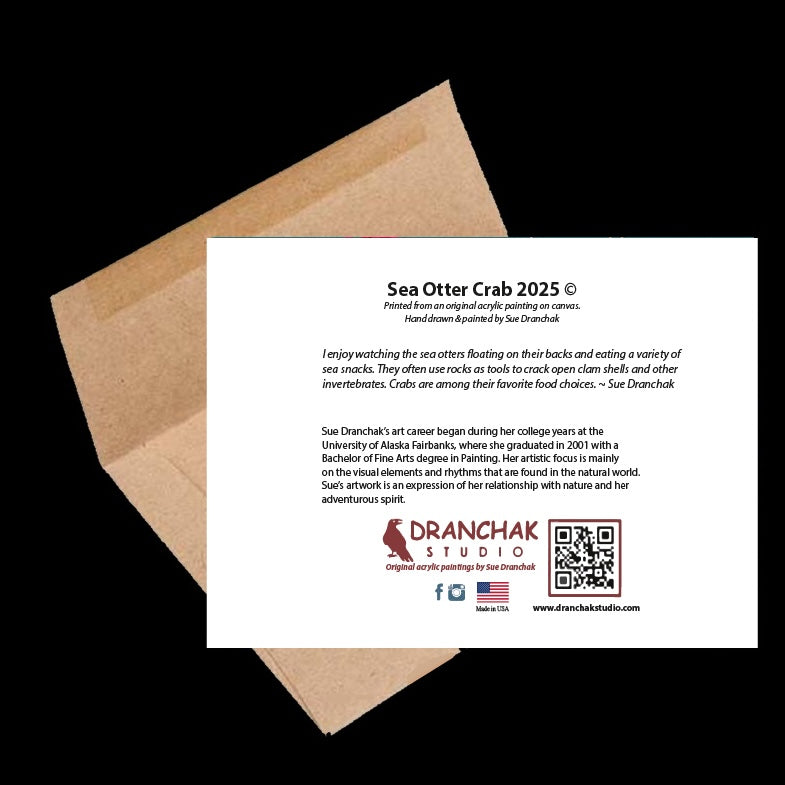 "Sea Otter Crab 2025" Original art created and produced entirely by Sue Dranchak, Artist/Owner of Dranchak Studio LLC. All rights reserved.